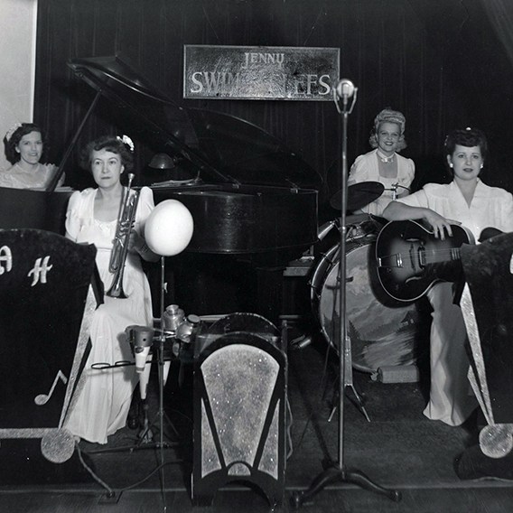 Myrtle Alice Dugan was my Grandmother on my Mom’s side. She died at 45 years old from cancer. I was 5 when she died. I still remember her singing while playing piano. Myrtle was in an all-female band in the mid-1940s. I do have some audio of her on very old reel-to-reel tape. I hope to post some of these tracks eventually. They are not recordings of her band, but of her at our home, playing piano and singing.