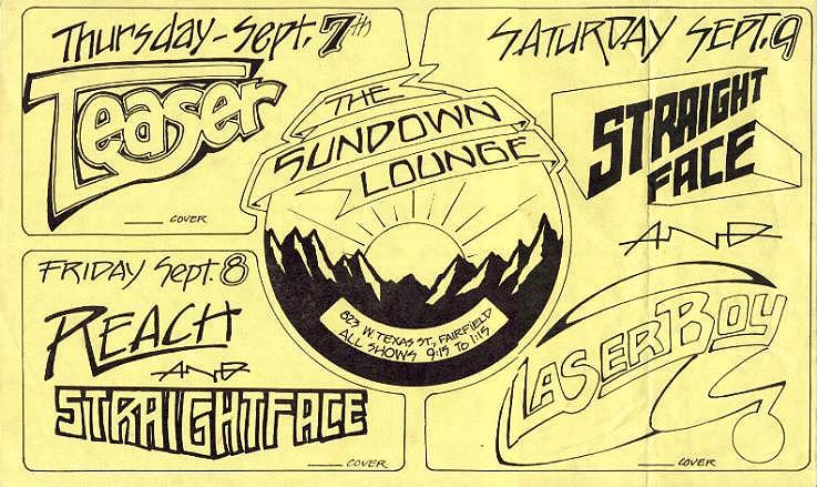 Teaser’s first public paying gig, at the Sundown Lounge in Fairfield, Ca. circa 1978.