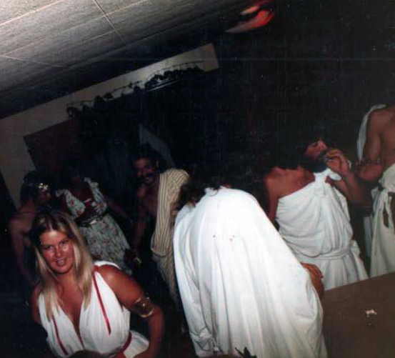 Sometimes the parties were Toga Parties! We had two or three that I remember…And the skirts were quite freeing in the cool breeze! Nothing like listening to the OP play Radar Love dressed in togas! It always was wild!